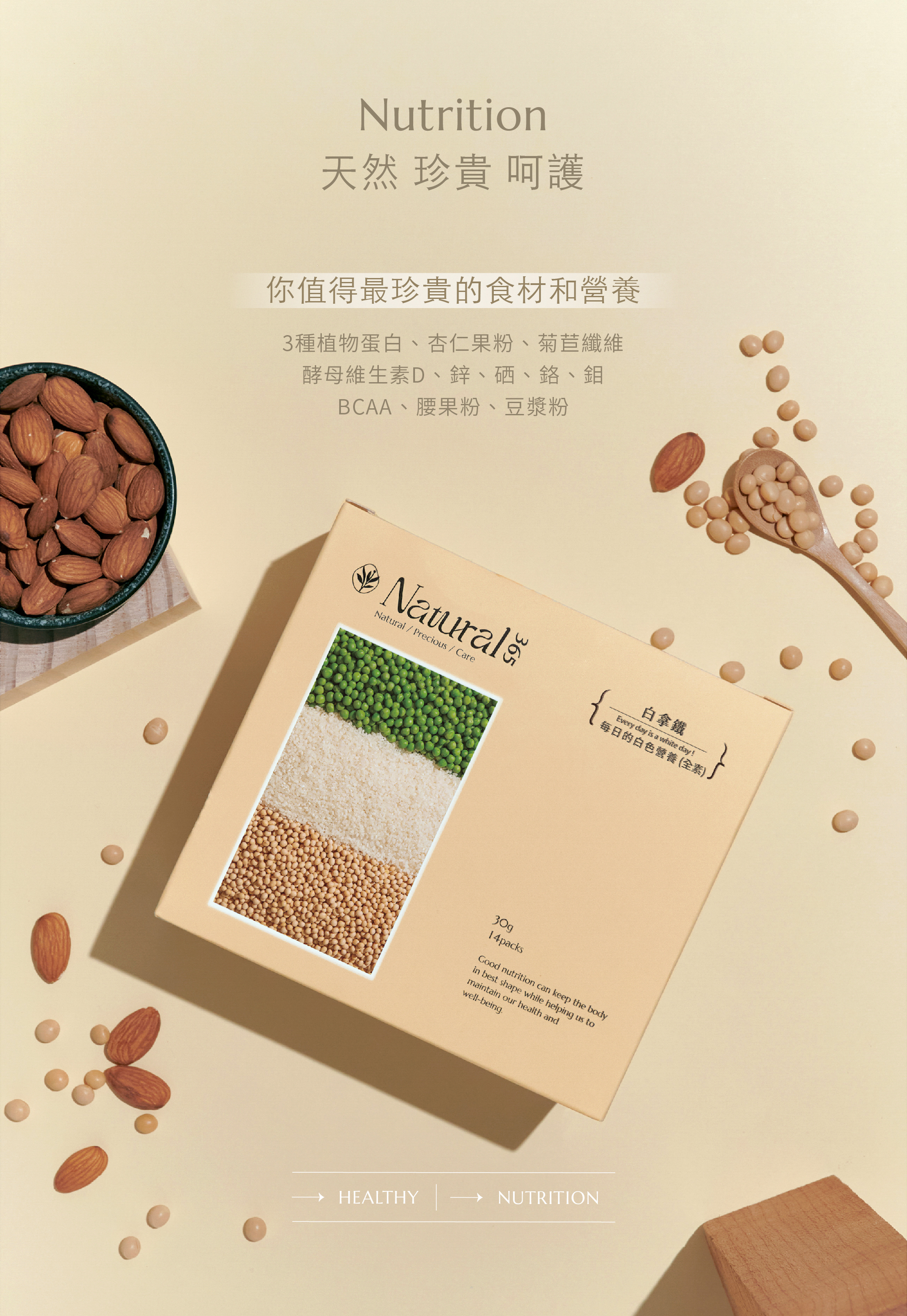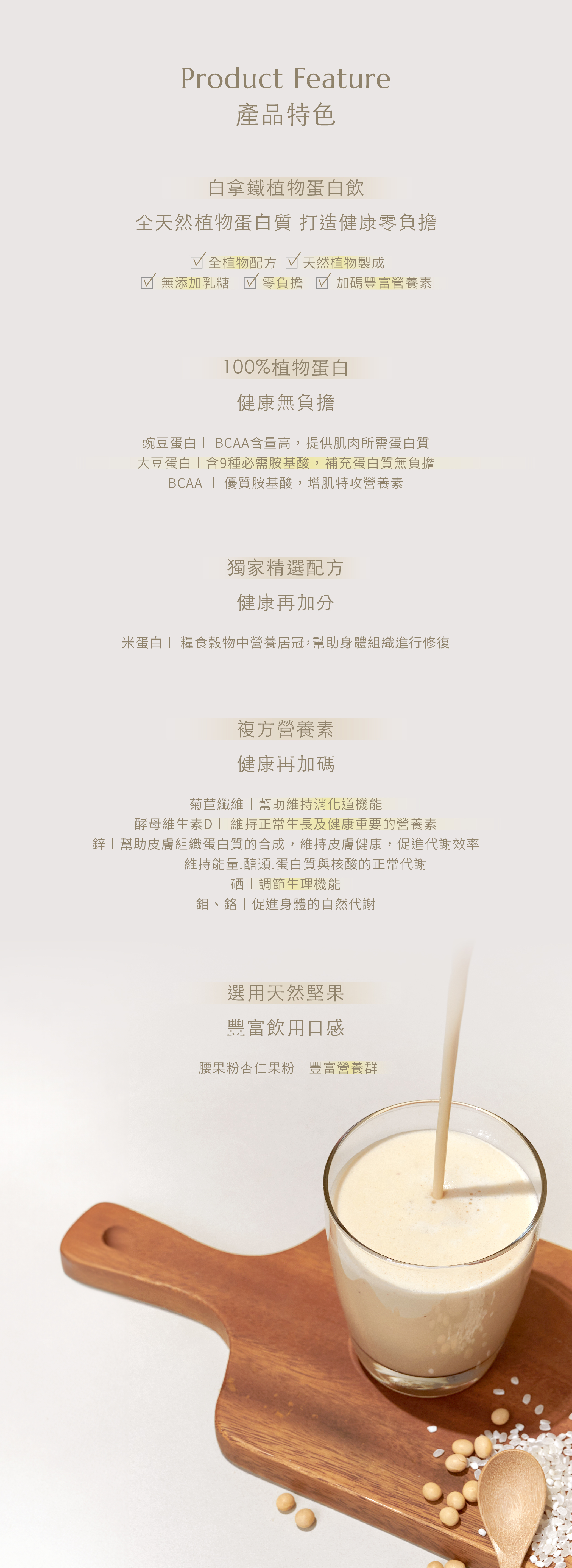 ┃天然食材平衡豆腥味 : 腰果粉、豆漿粉、杏仁果粉